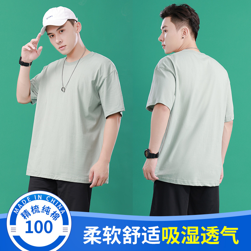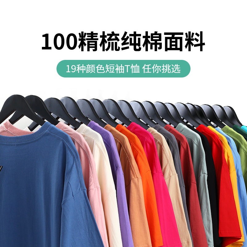 210g cotton drop shoulder short sleeve T-shirt, 25 colors available in stock, crew neck, loose fit casual T-shirt.